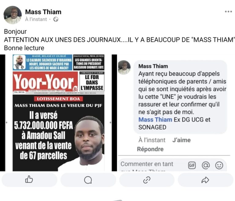 Affaire BOA – Clarification : Mass Thiam (UCG) n’est pas impliqué, il s’agit de Massamba Thiam 8 mai 2025