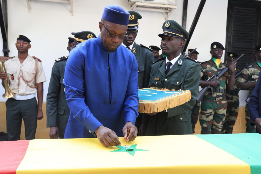 Le Commandant Pape Mignane Ndong, a été conduit ce jeudi à sa dernière demeure, à Djilass (Fatick). Le Premier ministre Ousmane Sonko, présent aux côtés de la famille du défunt et de ses frères d’armes, a élevé son ancien aide de camp, au nom du président de la République et Chef suprême des Armées, Bassirou Diomaye Diakhar Faye, au grade de Chevalier dans l’Ordre national du Lion, à titre posthume. Cette élévation est une reconnaissance envers Pape Mignane Ndong, pour ses loyaux services à la Nation.